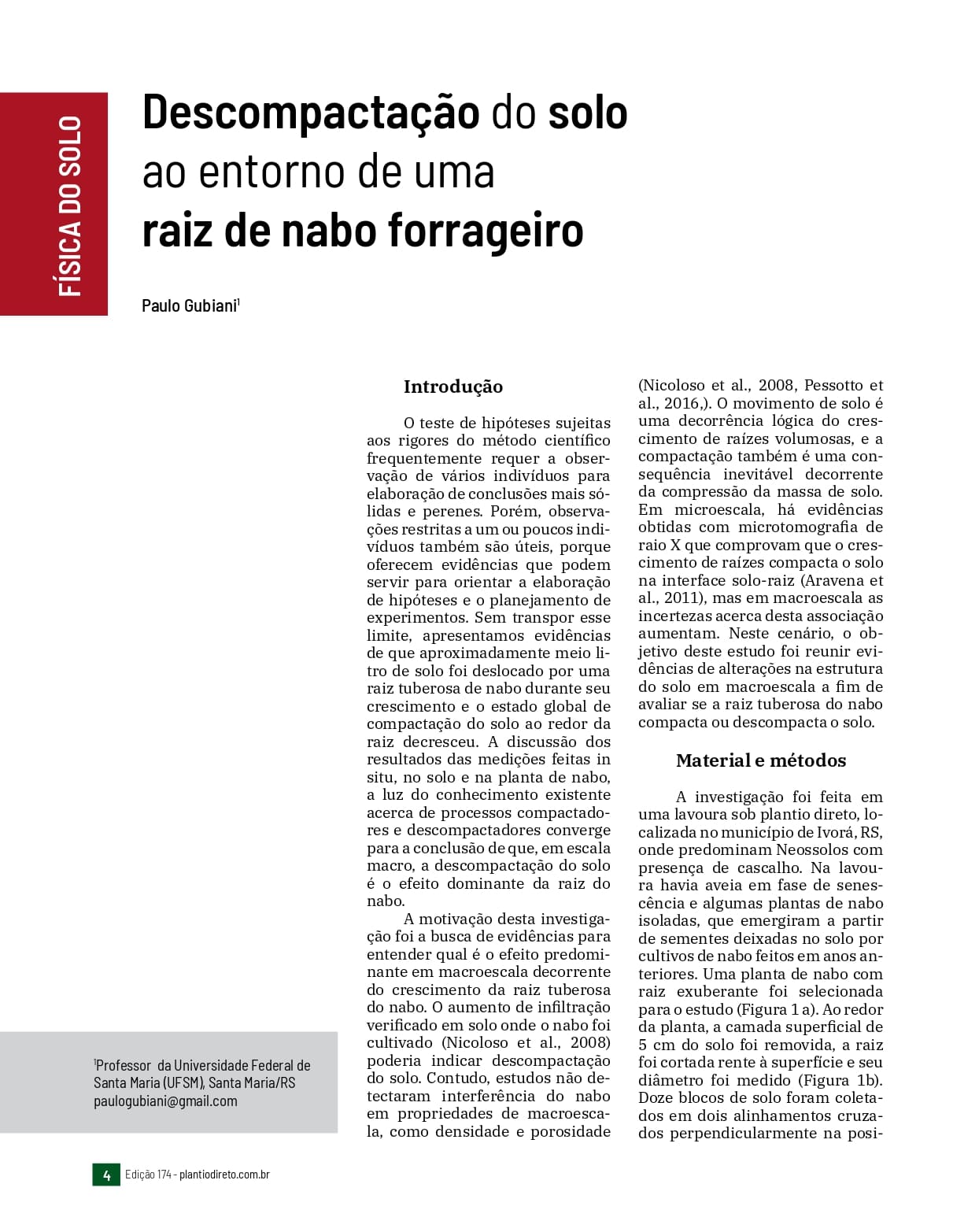 Descompactação do solo ao entorno de uma raiz de nabo forrageiro