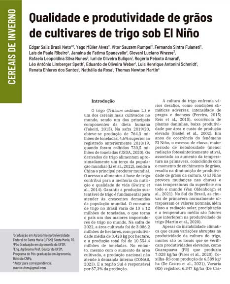 Qualidade e produtividade de grãos de cultivares de trigo sob El Niño