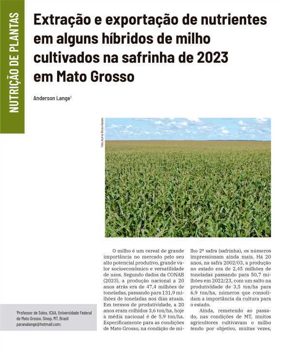 Extração e exportação de nutrientes em alguns híbridos de milho cultivados na safrinha de 2023 em Mato Grosso
