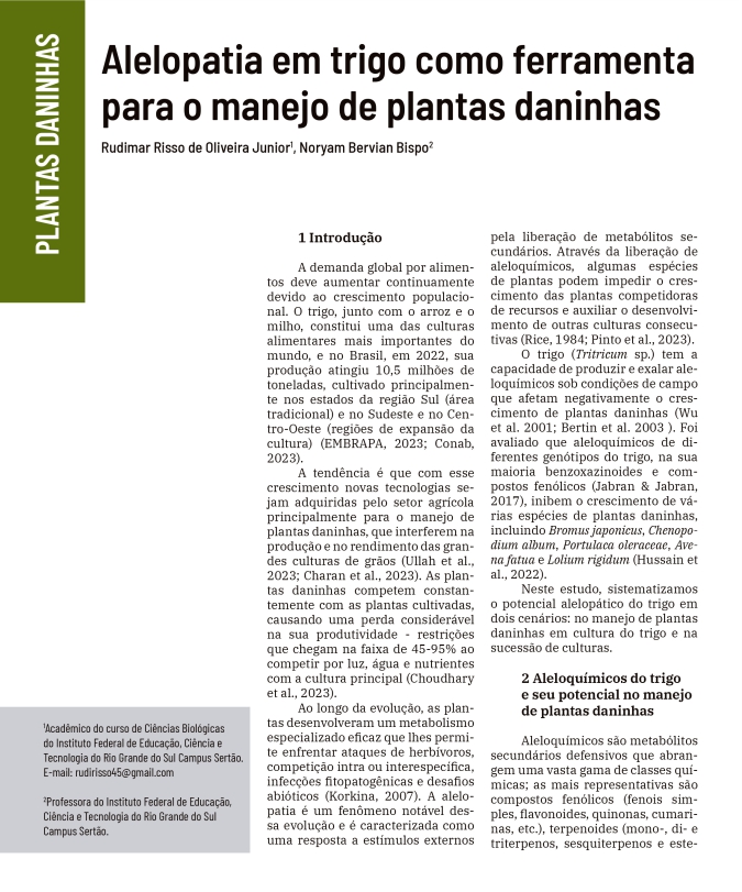 Alelopatia em trigo como ferramenta para o manejo de plantas daninhas