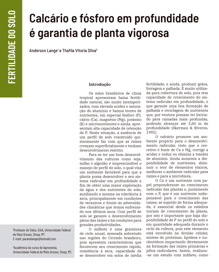 Calcário e fósforo em profundidade é garantia de planta vigorosa