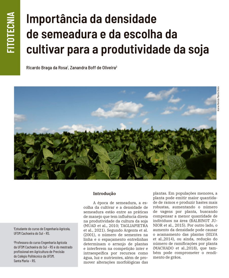 Importância da densidade de semeadura e da escolha da cultivar para a produtividade da soja
