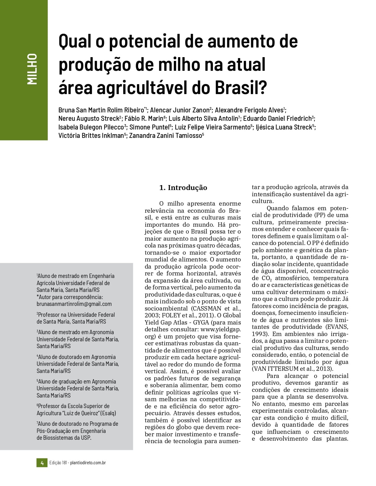 Qual o potencial de aumento de produção de milho na atual área agricultável do Brasil?