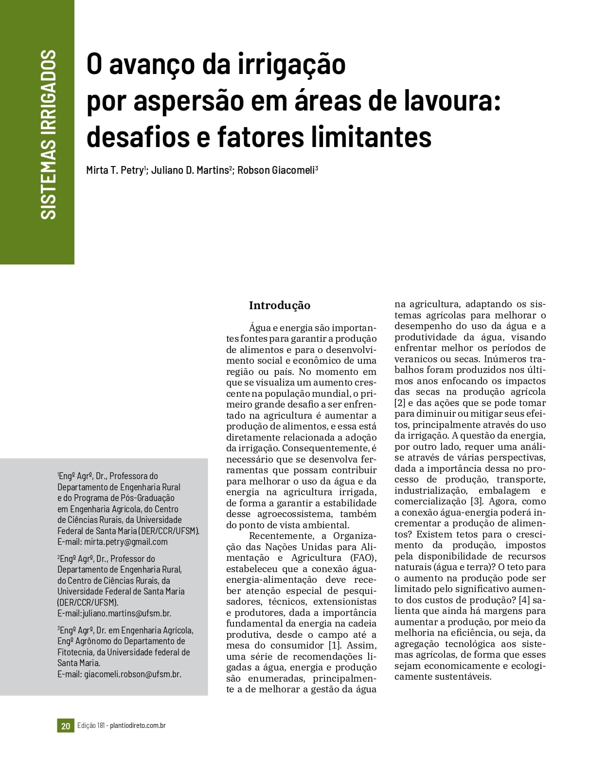 O avanço da irrigação por aspersão em áreas de lavoura: desafios e fatores limitantes