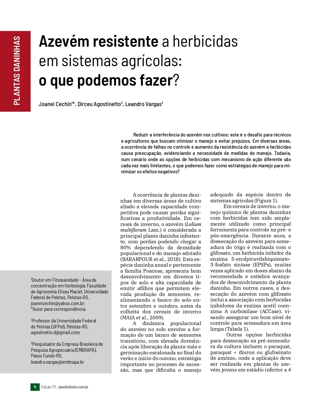 Azevém resistente a herbicidas em sistemas agrícolas: o que podemos fazer?
