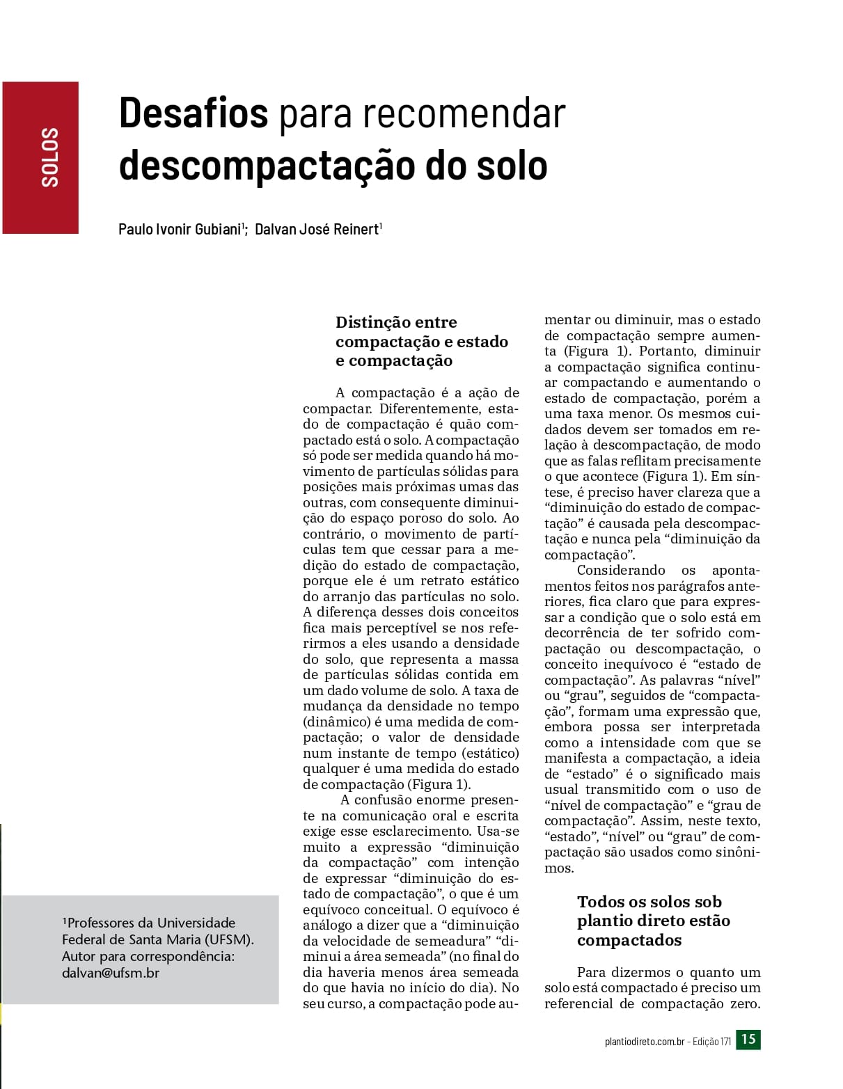 Desafios para recomendar descompactação do solo