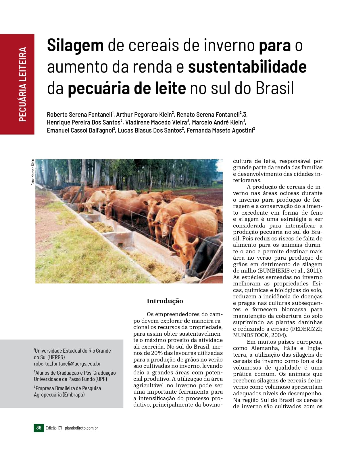 Silagem de cereais de inverno para o aumento da renda e sustentabilidade da pecuária de leite no sul do Brasil