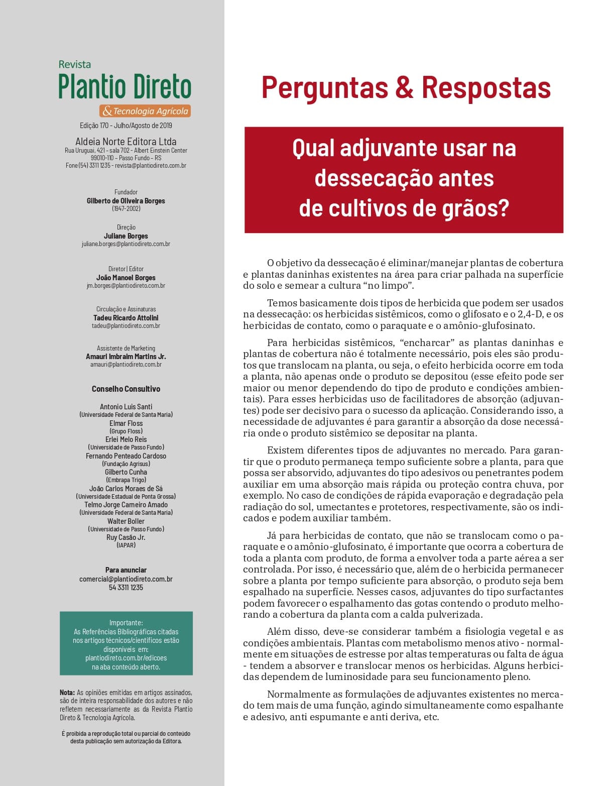 Qual adjuvante usar na dessecação antes de cultivos de grãos?