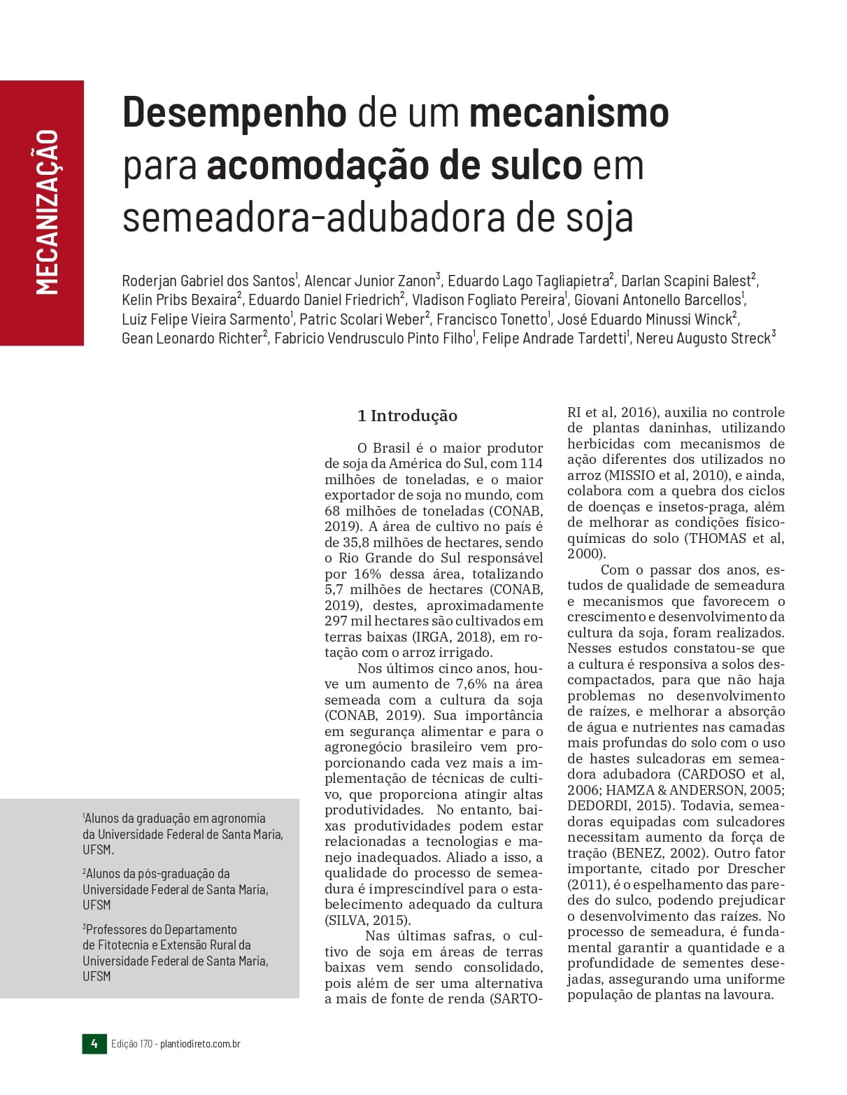 Desempenho de um mecanismo para acomodação de sulco em semeadora-adubadora de soja