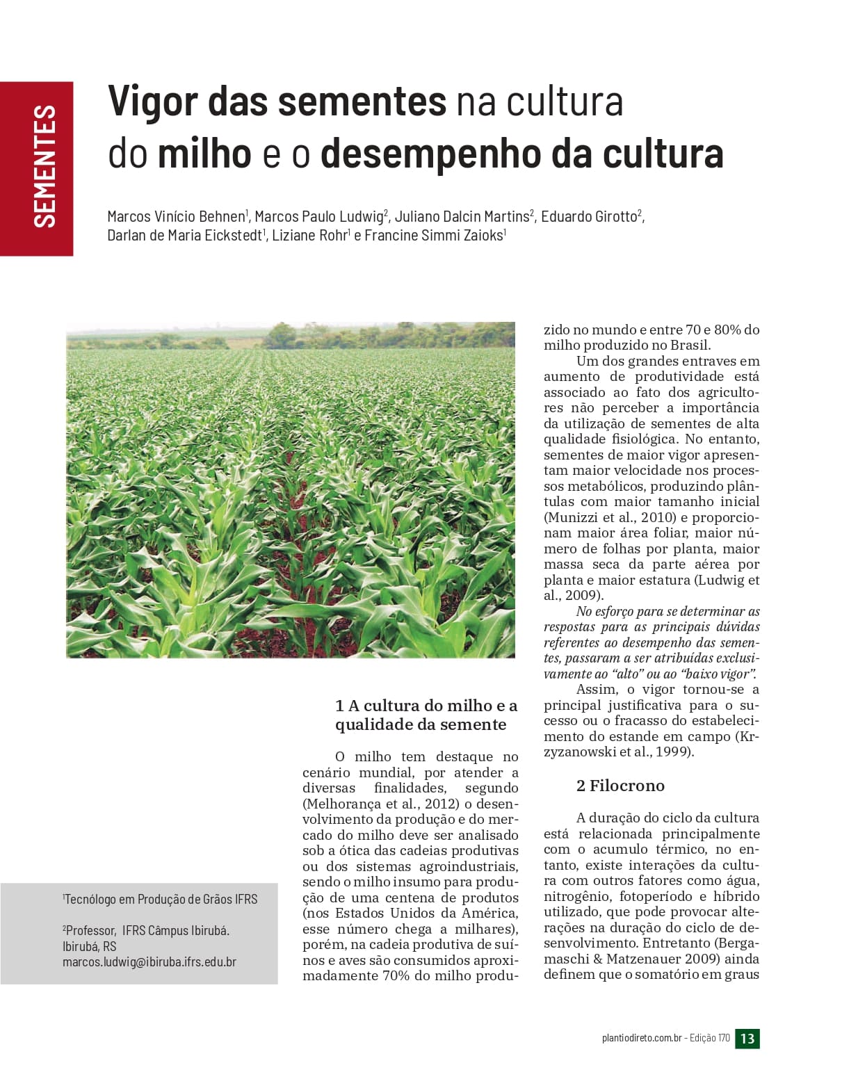 Vigor das sementes na cultura do milho e o desempenho da cultura