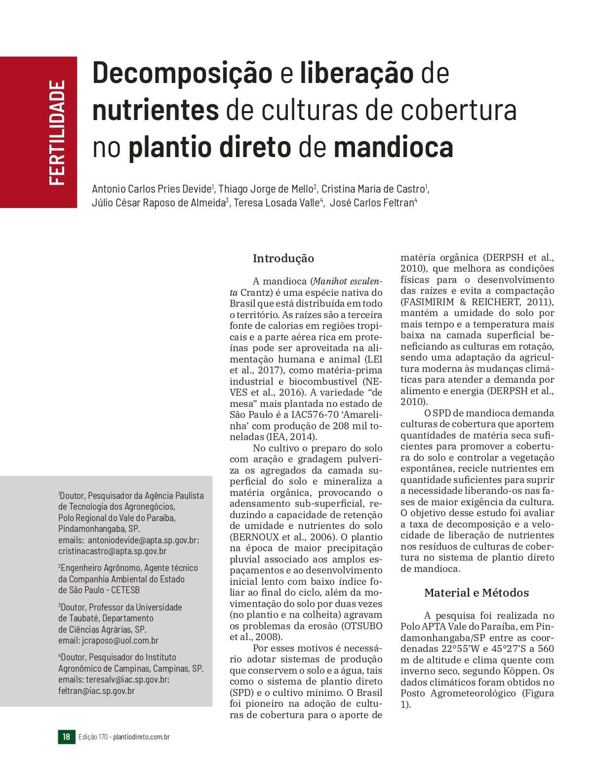 Decomposição e liberação de nutrientes de culturas de cobertura no plantio direto de mandioca