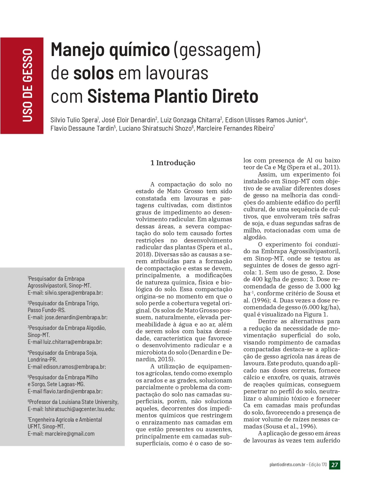 Manejo químico (gessagem) de solos em lavouras com Sistema Plantio Direto