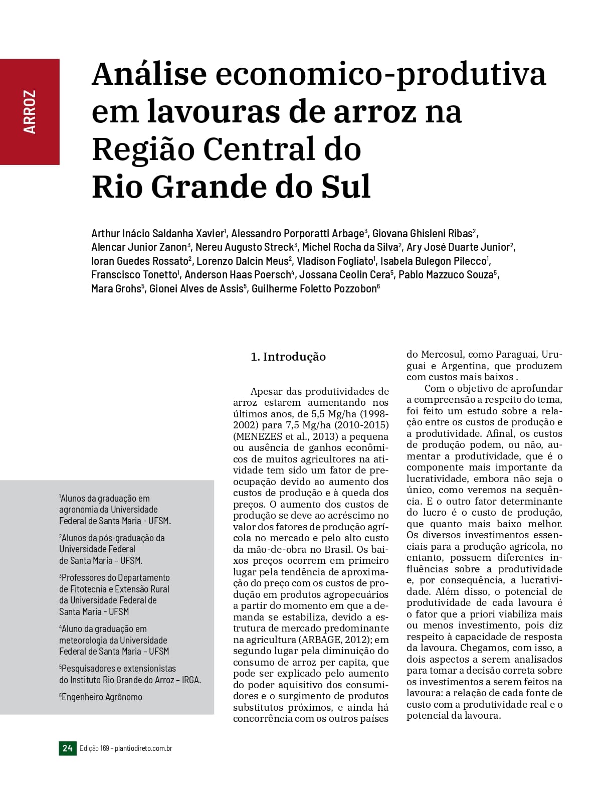 Análise economico-produtiva em lavouras de arroz na Região Central do Rio Grande do Sul