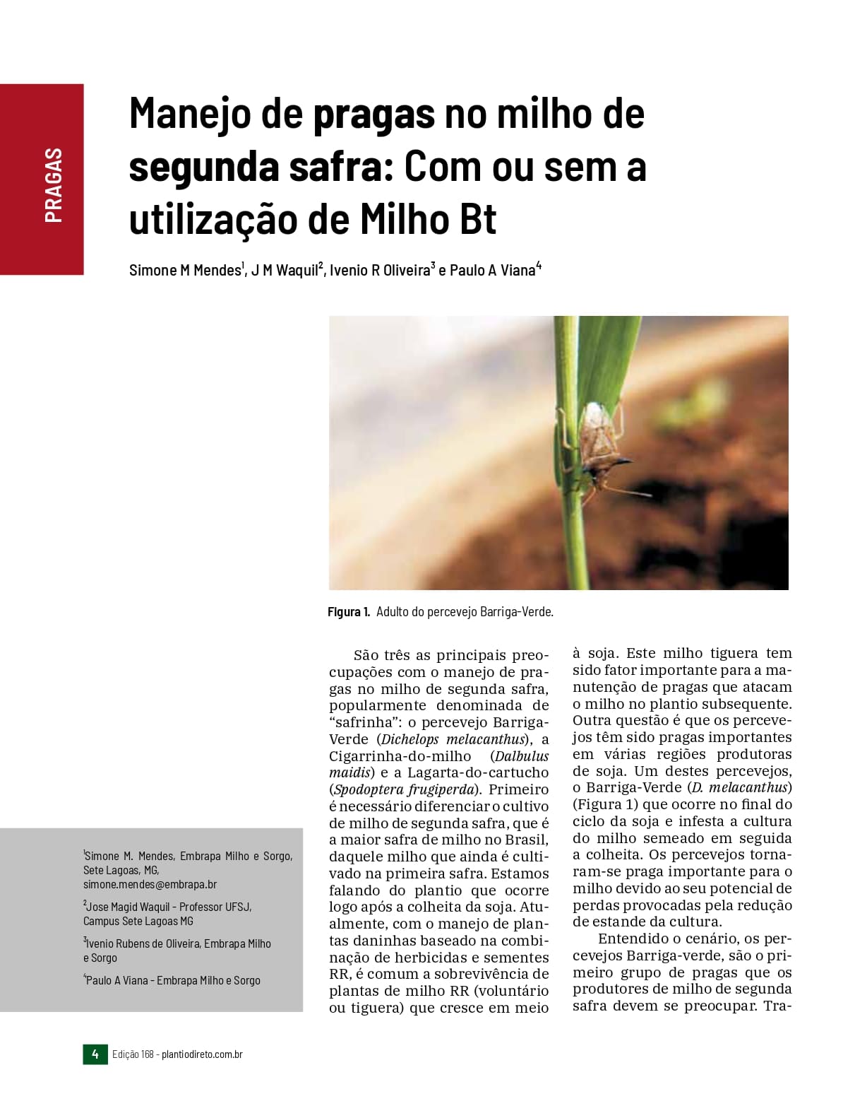 Manejo de pragas no milho de segunda safra: Com ou sem a utilização de Milho Bt