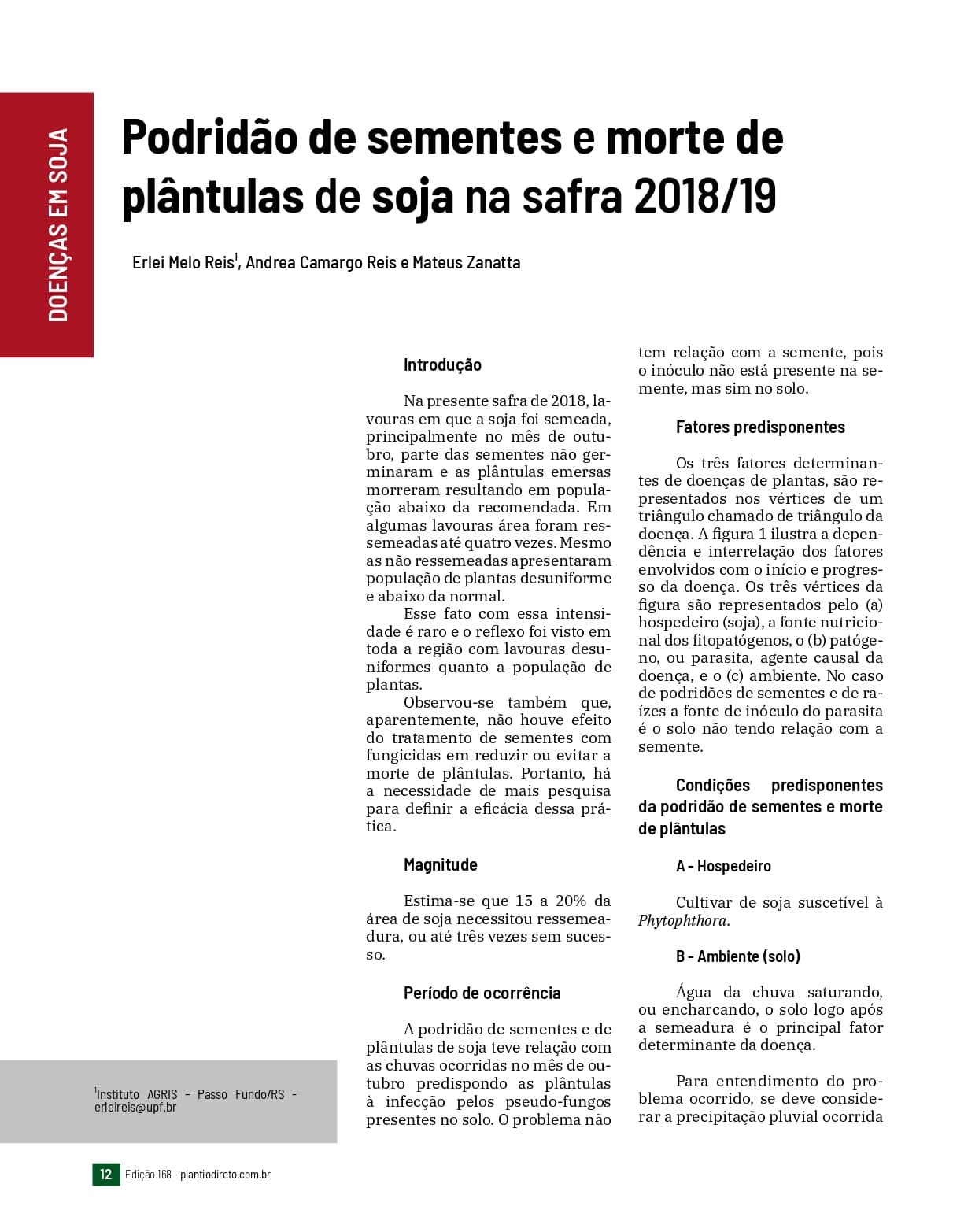 Podridão de sementes e morte de plântulas de soja na safra 2018/19