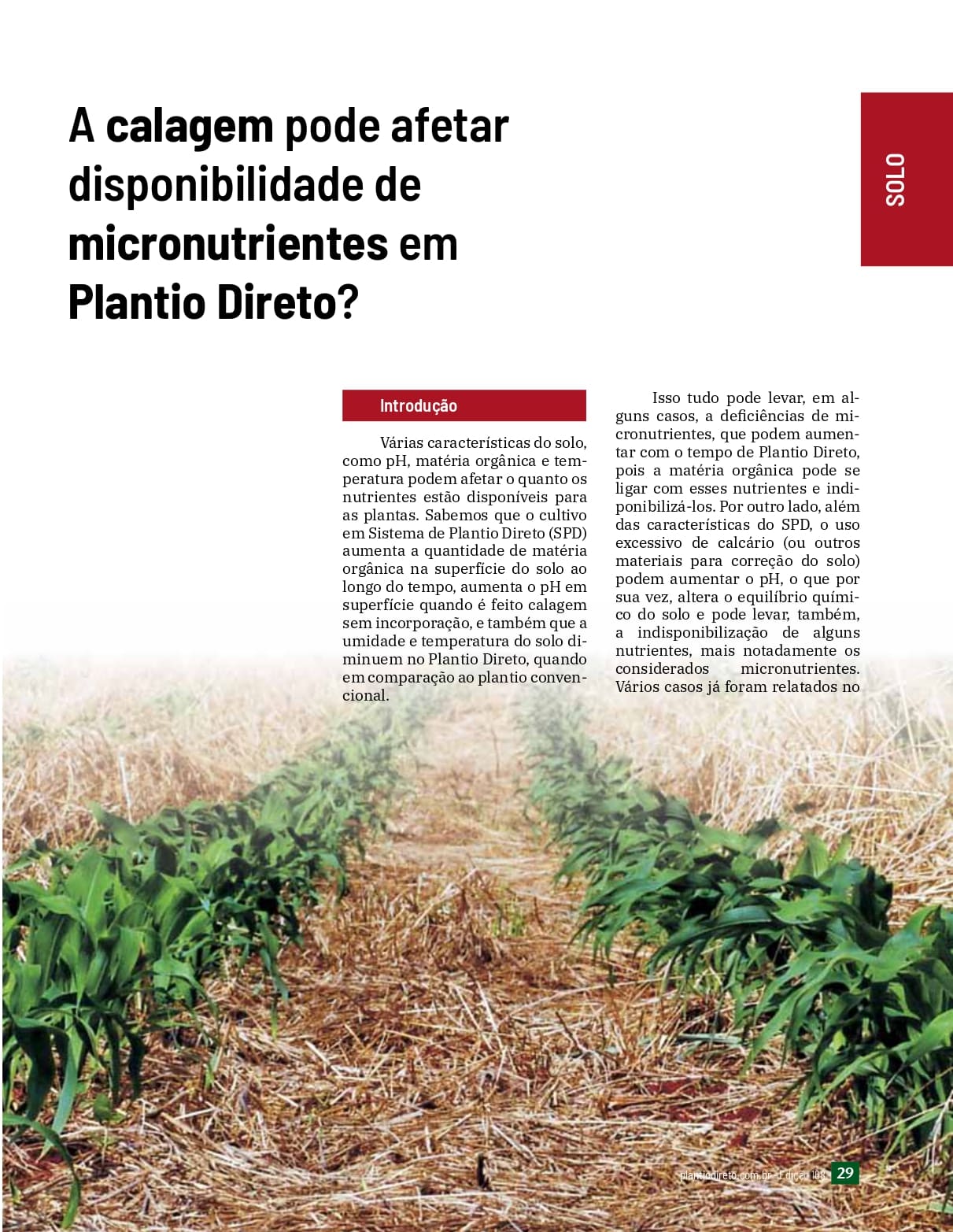 A calagem pode afetar disponibilidade de micronutrientes em Plantio Direto?