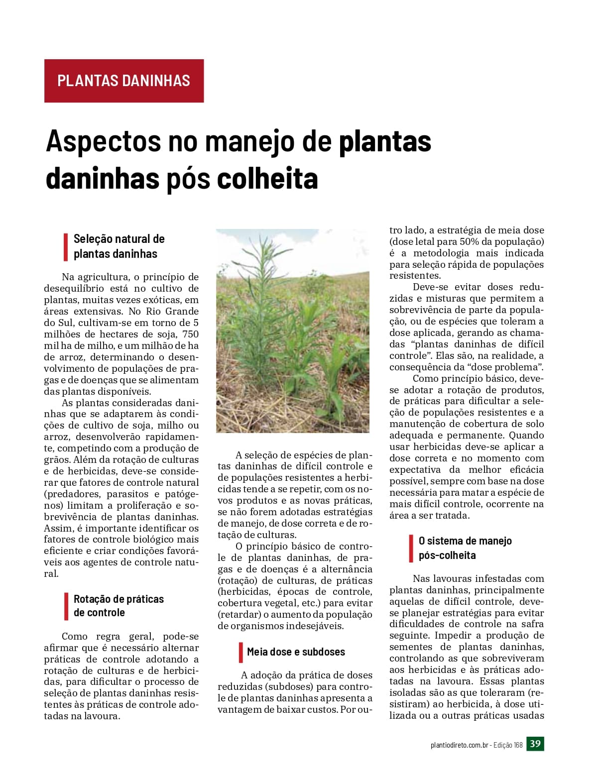 Aspectos no manejo de plantas daninhas pós colheita