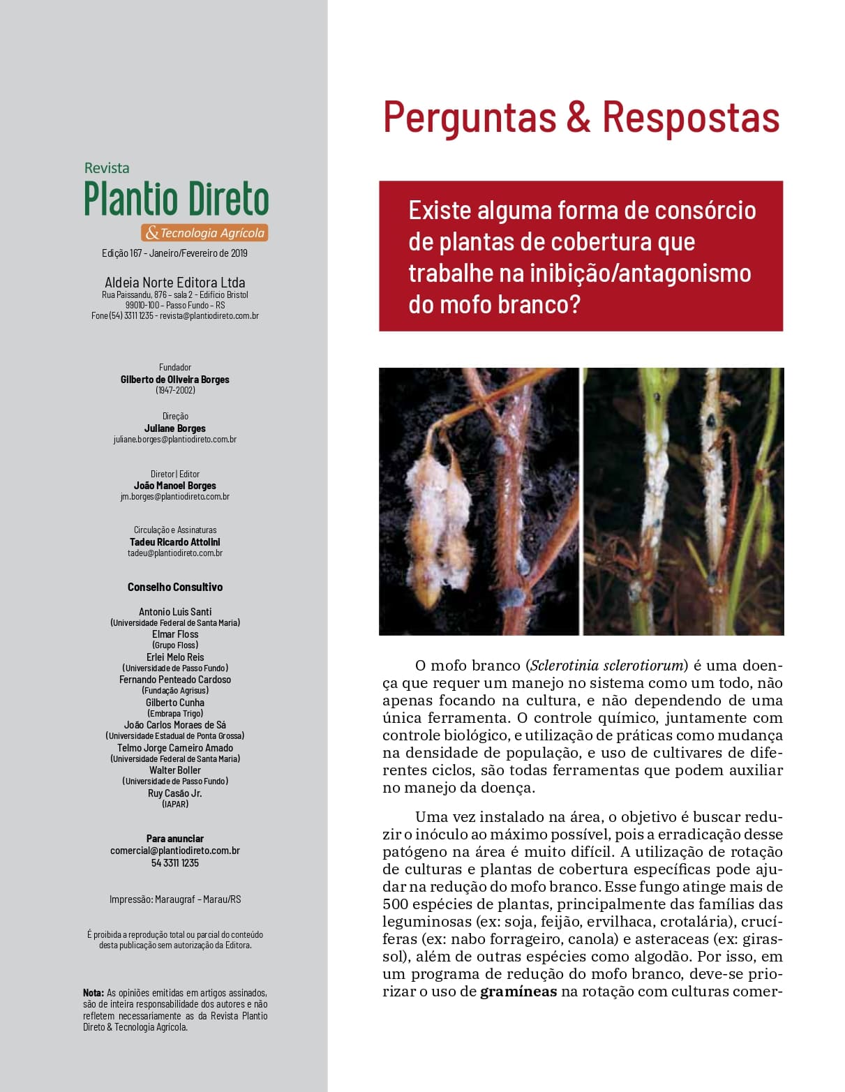 Perguntas e Respostas: Existe alguma forma de consórcio de plantas de cobertura que trabalhe na inibição/antagonismo do mofo branco?