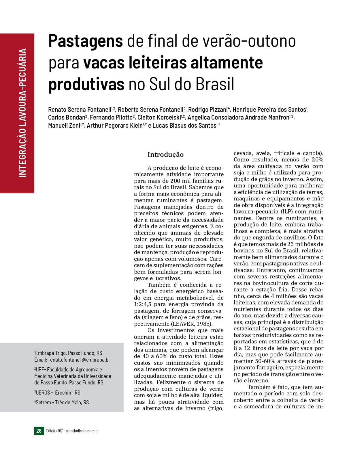 Pastagens de final de verão-outono para vacas leiteiras altamente produtivas no Sul do Brasil