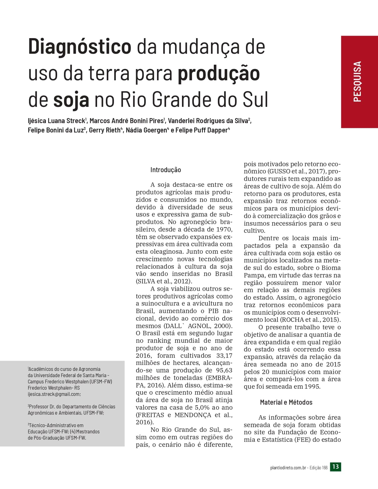 Diagnóstico da mudança de uso da terra para produção de soja no Rio Grande do Sul