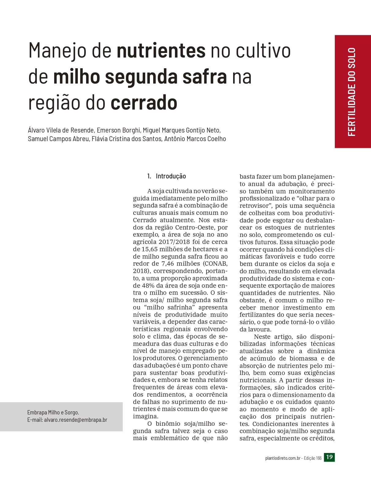 Manejo de nutrientes no cultivo de milho segunda safra na região do cerrado