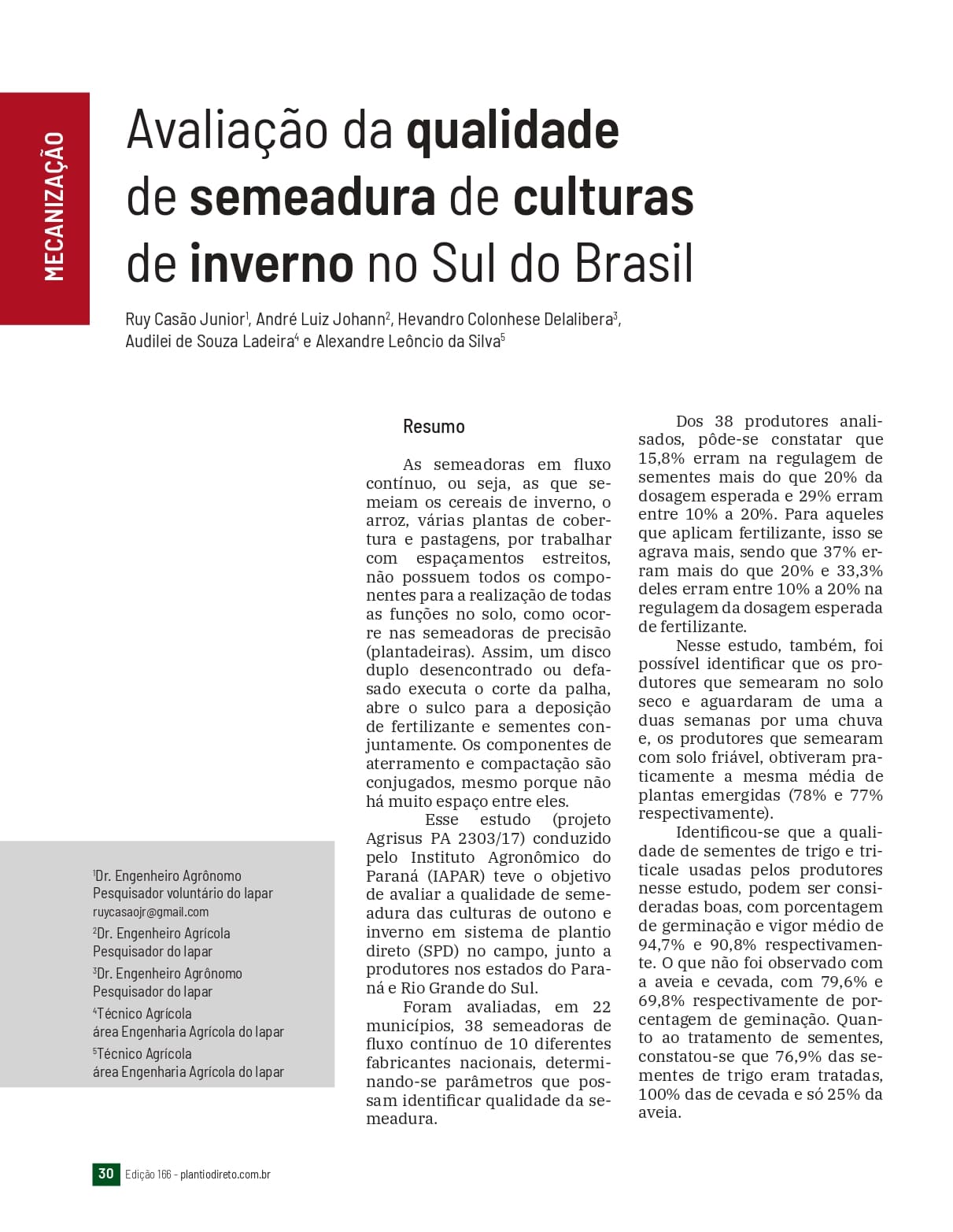 Avaliação da qualidade de semeadura de culturas de inverno no Sul do Brasil