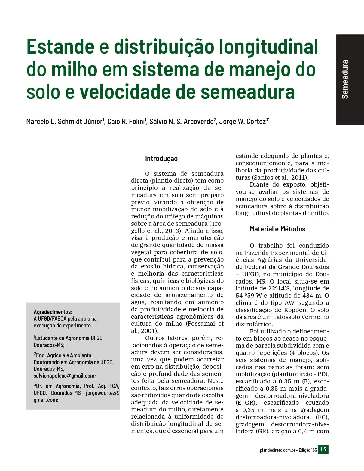 Estande e distribuição longitudinal do milho em sistema de manejo do solo e velocidade de semeadura