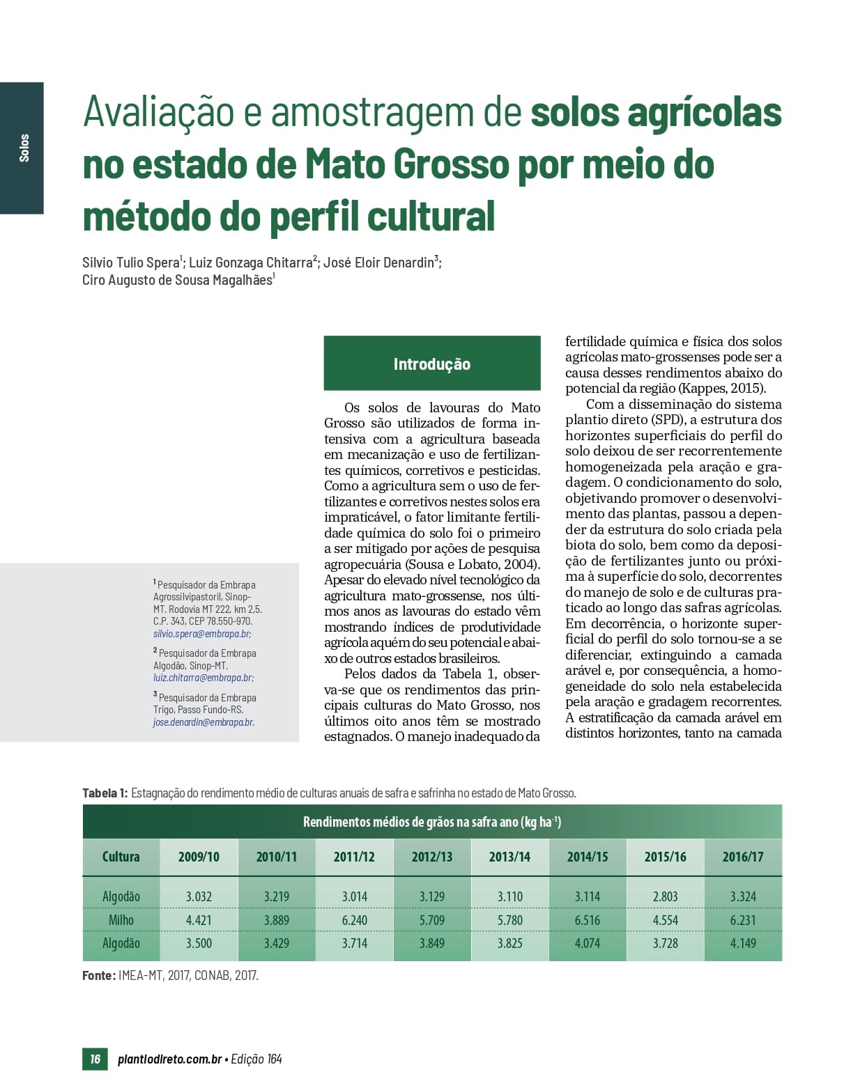 Avaliação e amostragem de solos agrícolas no estado de Mato Grosso por meio do método do perfil cultural
