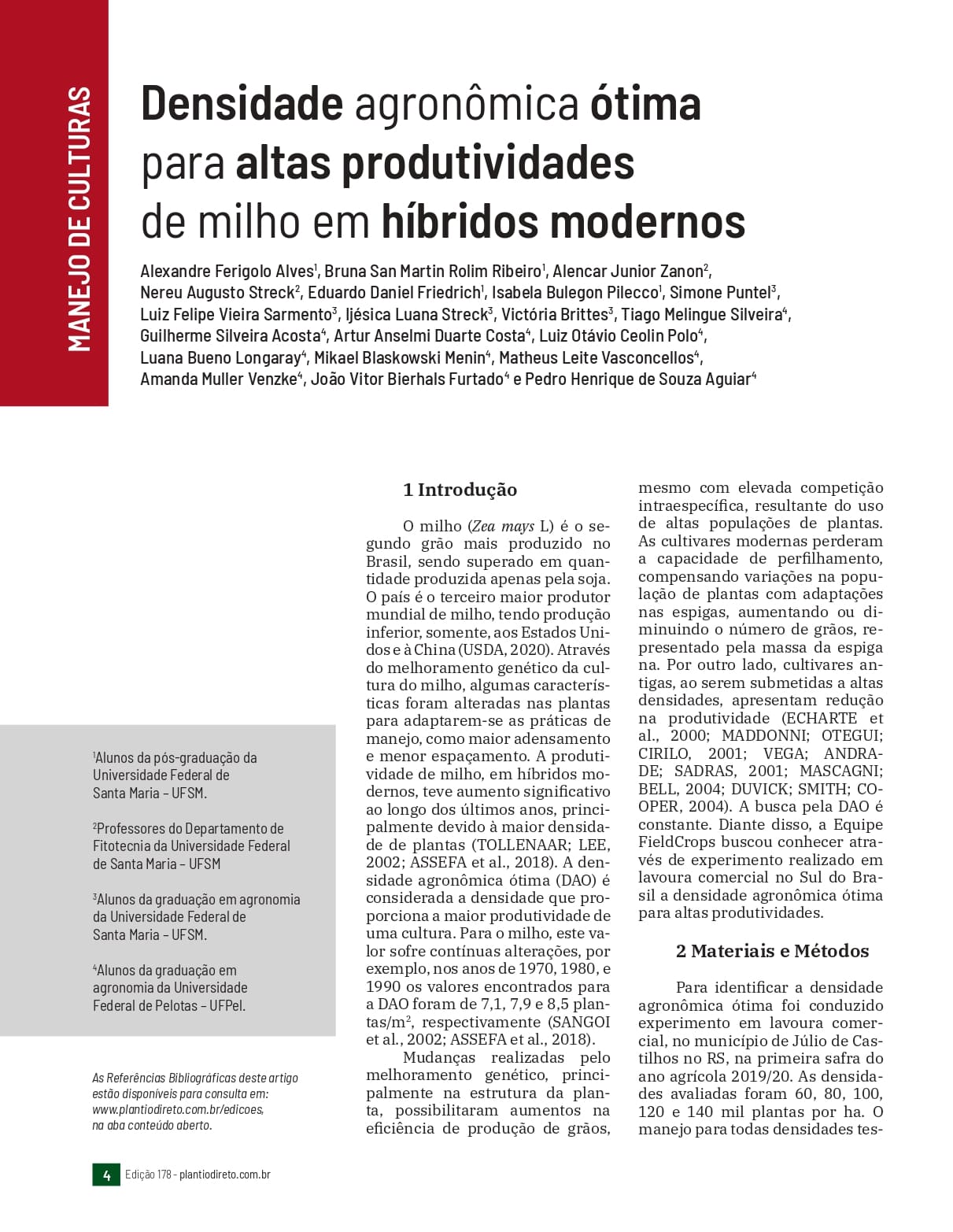 Densidade agronômica ótima para altas produtividades de milho em híbridos modernos