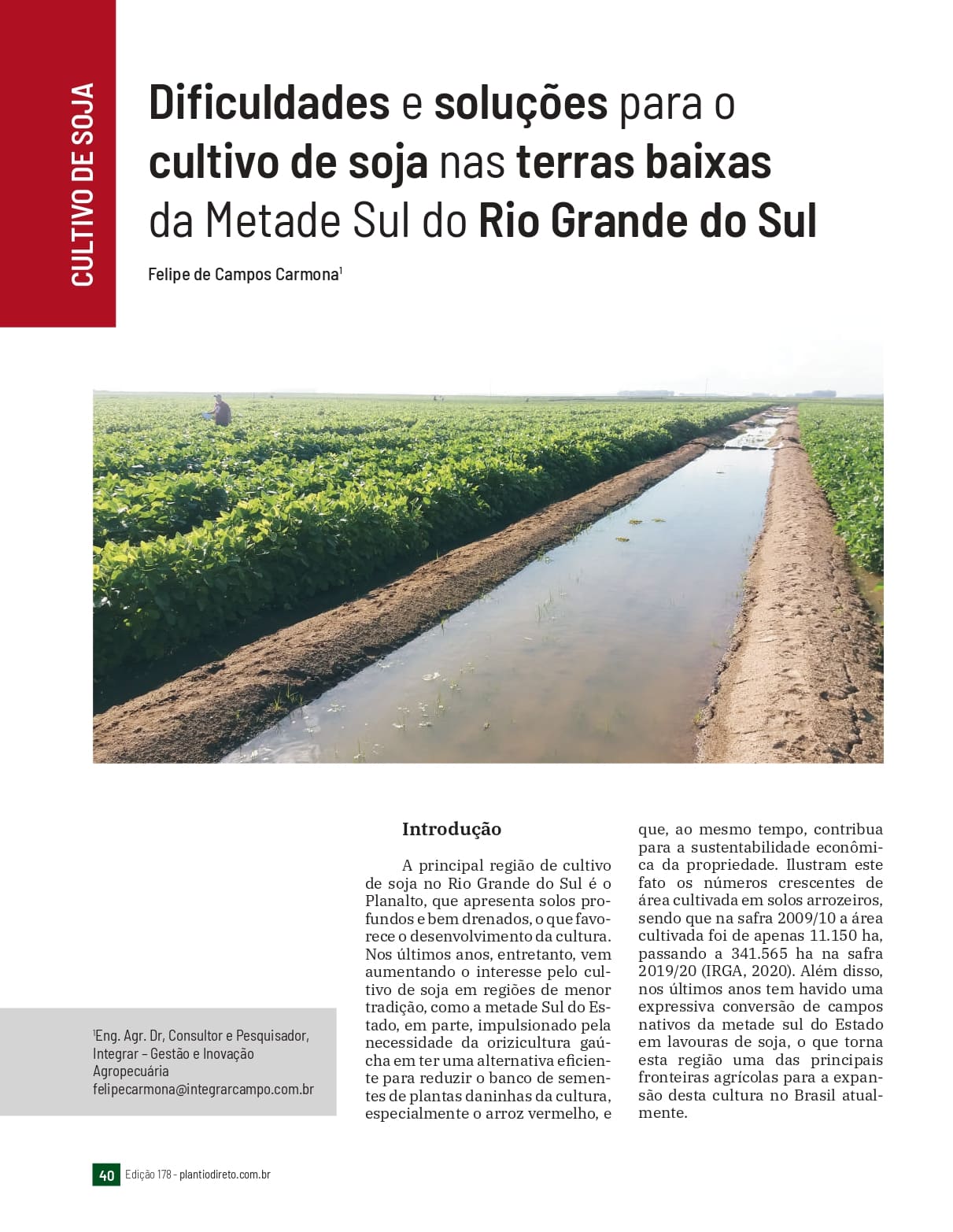 Dificuldades e soluções para o cultivo de soja nas terras baixas da Metade Sul do Rio Grande do Sul