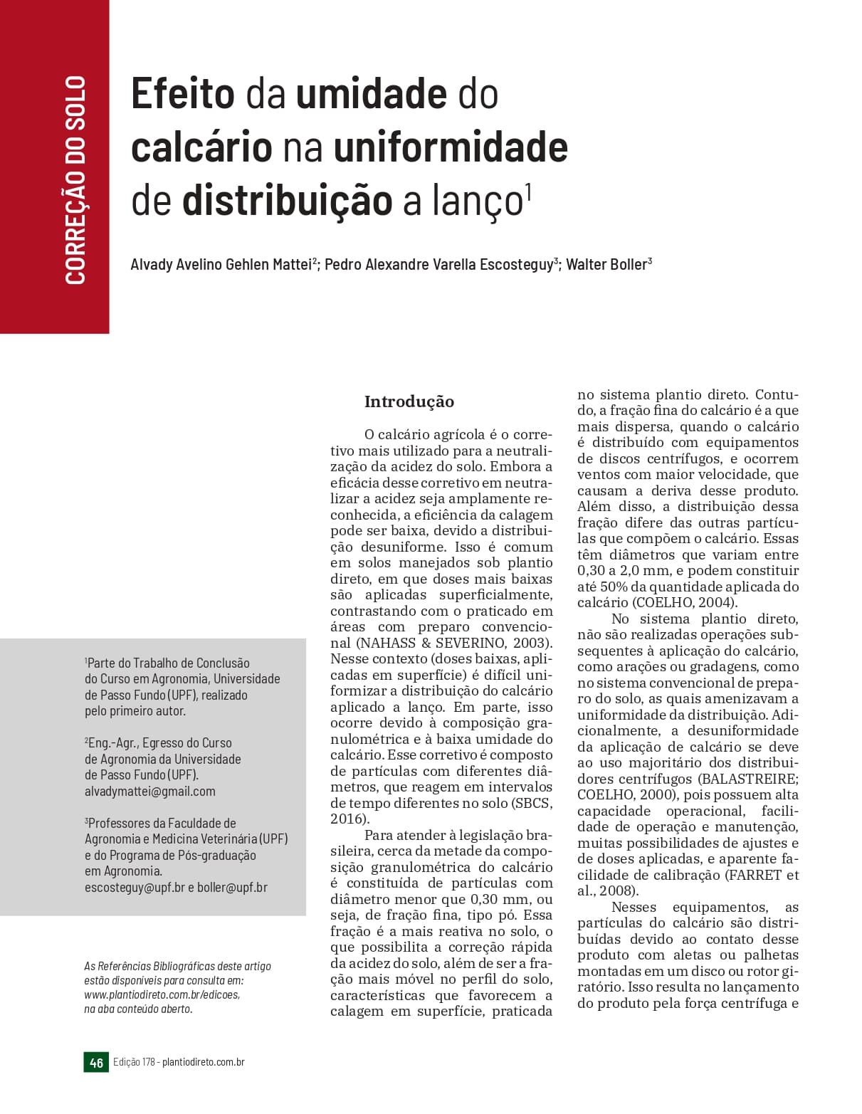 Efeito da umidade do calcário na uniformidade de distribuição a lanço