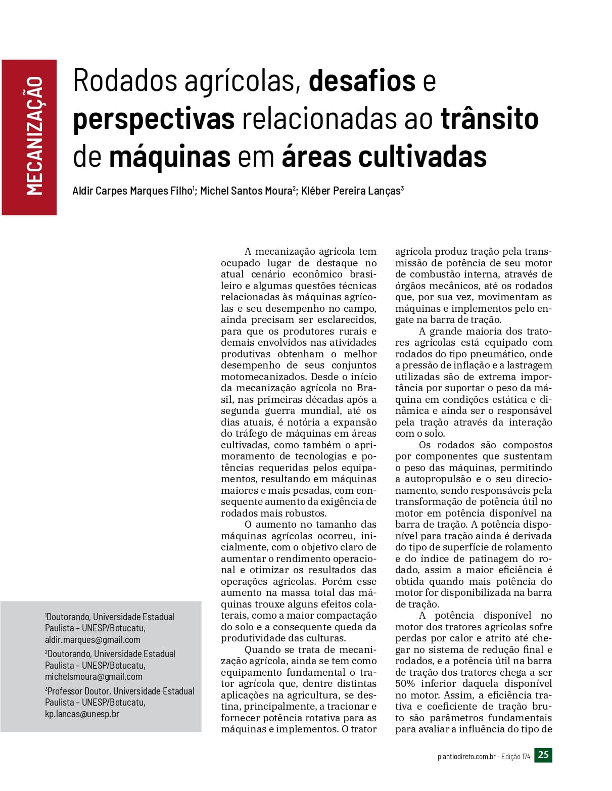 Rodados agrícolas, desafios e perspectivas relacionadas ao trânsito de máquinas em áreas cultivadas