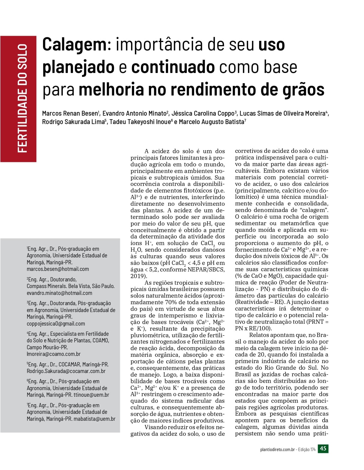 Calagem: importância de seu uso planejado e continuado como base para melhoria no rendimento de grãos