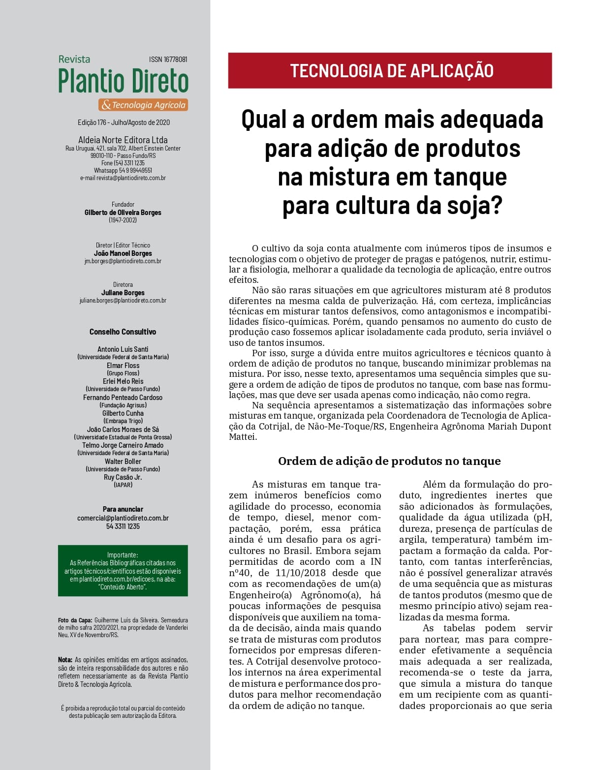 Qual a ordem mais adequada para adição de produtos na mistura em tanque para cultura da soja?