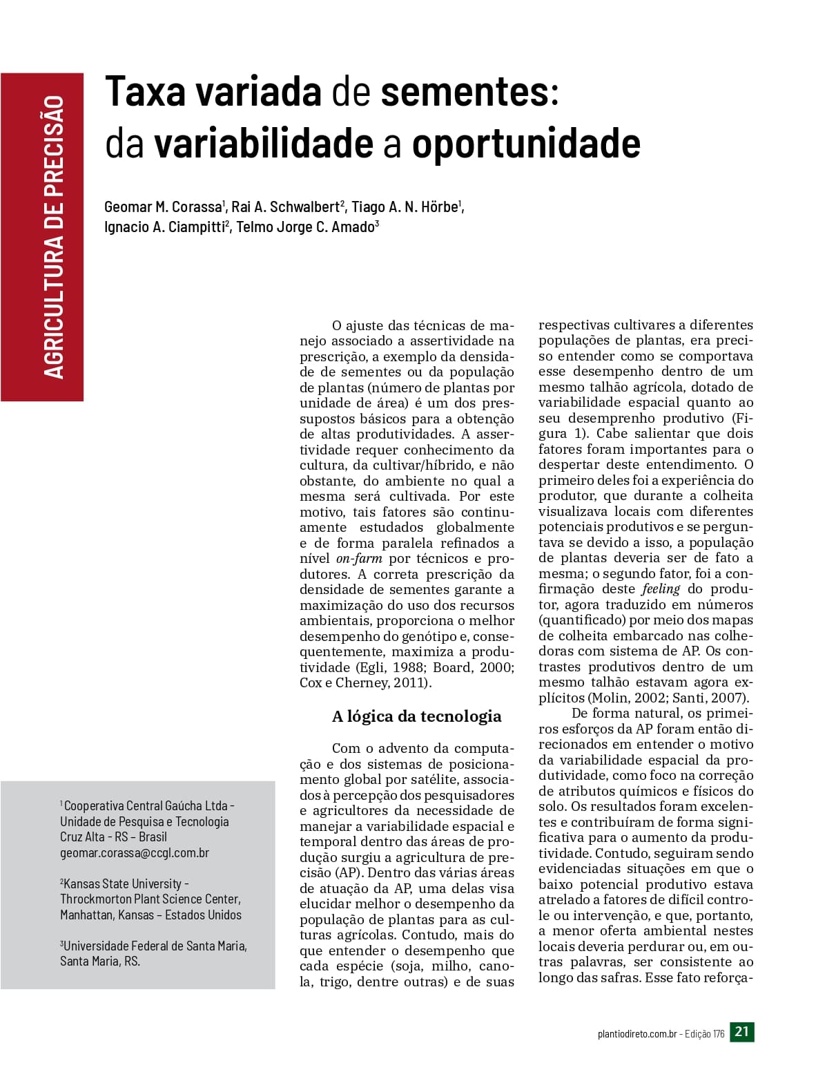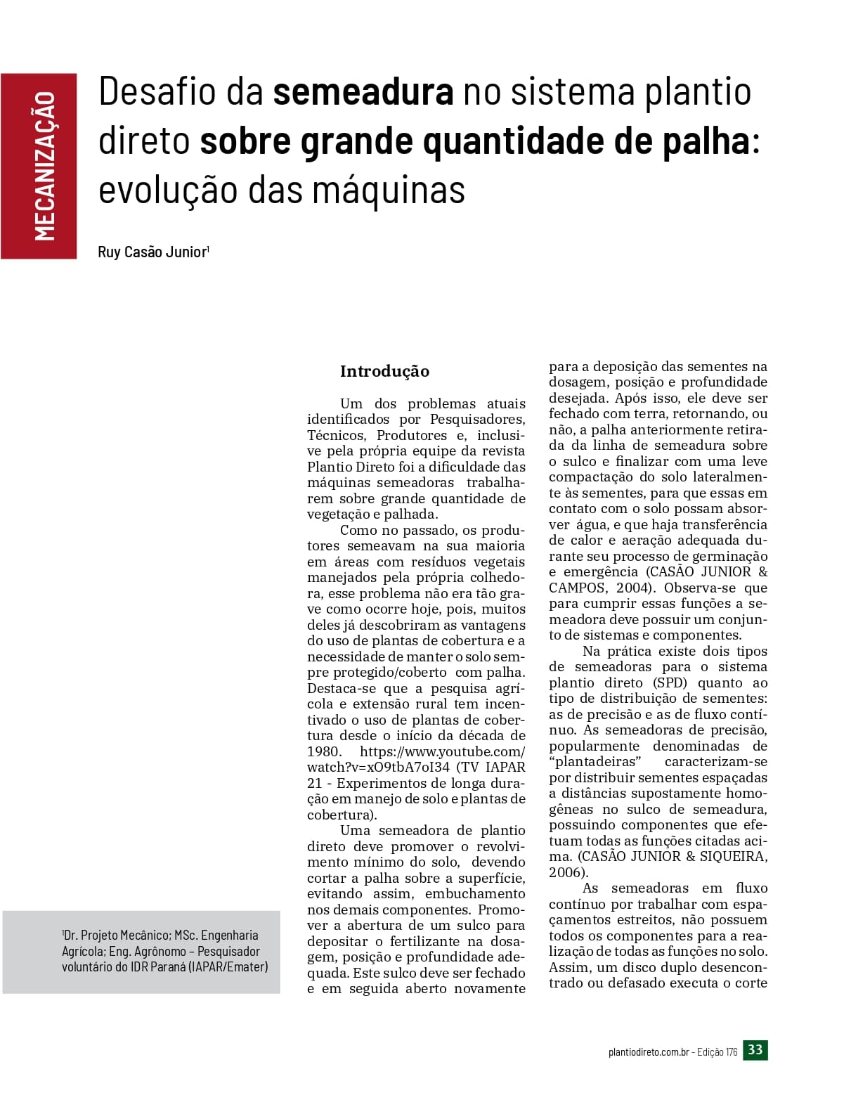 Desafio da semeadura no sistema plantio direto sobre grande quantidade de palha: evolução das máquinas