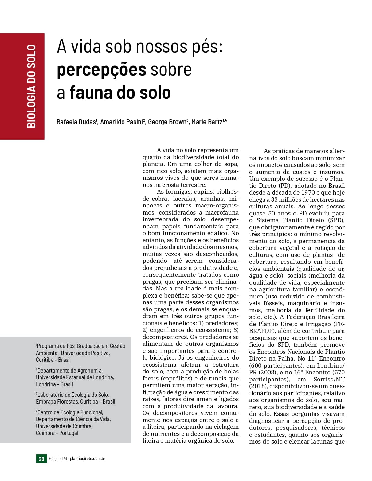 A vida sob nossos pés: percepções sobre a fauna do solo