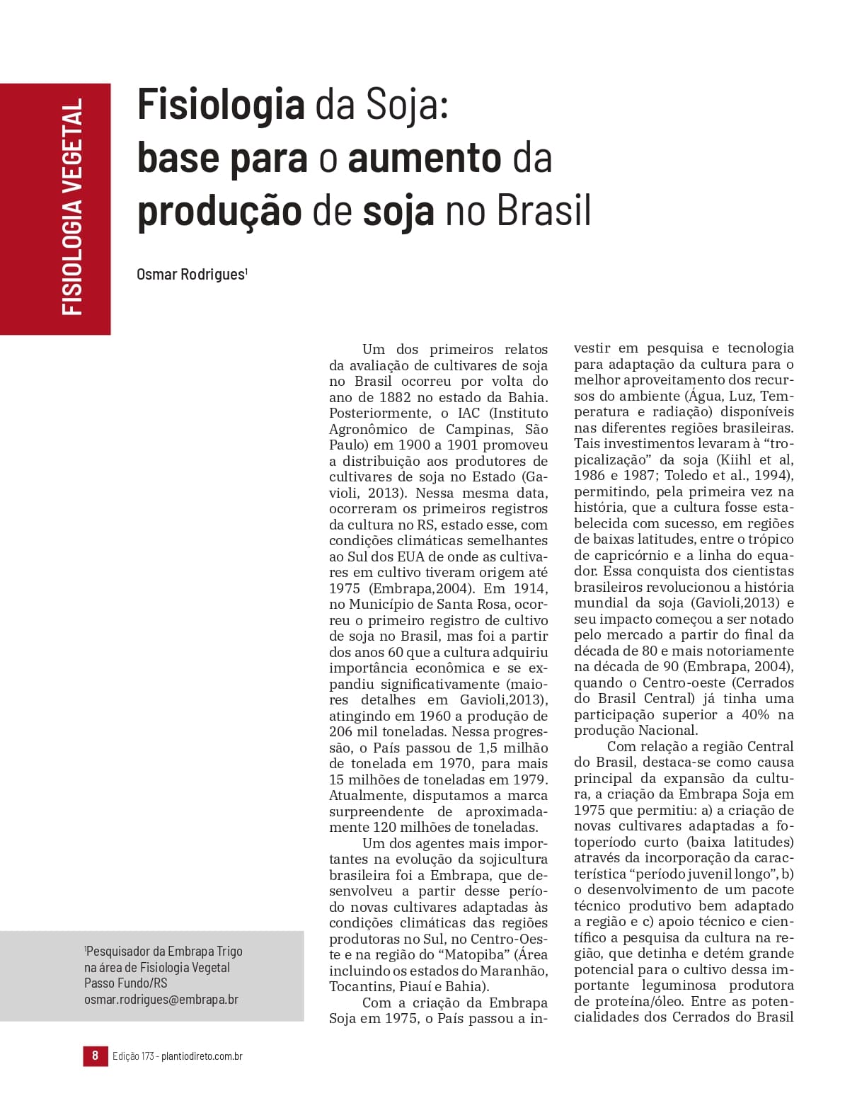 Fisiologia da Soja: base para o aumento da produção de soja no Brasil