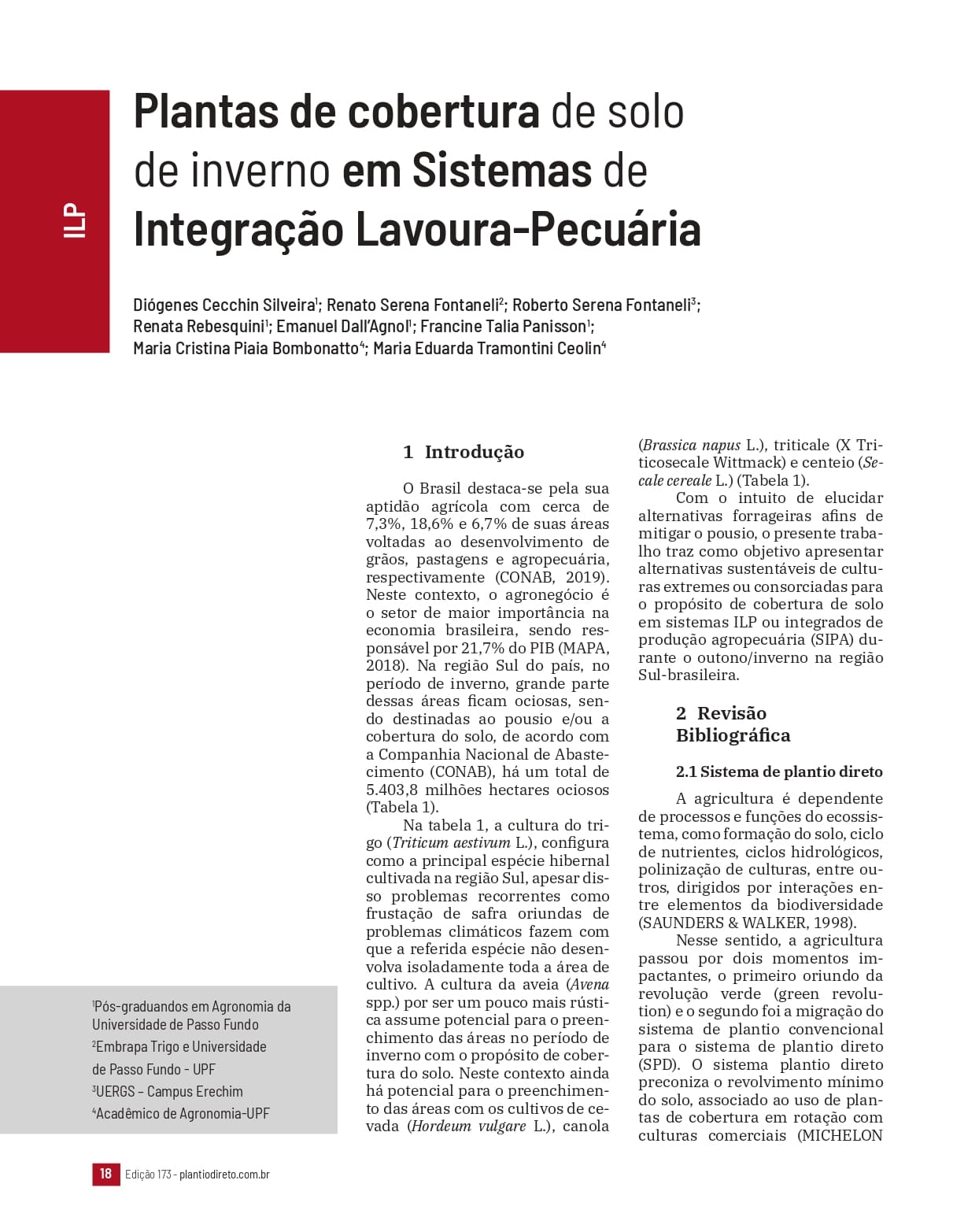 Plantas de cobertura de solo de inverno em Sistemas de Integração Lavoura-Pecuária