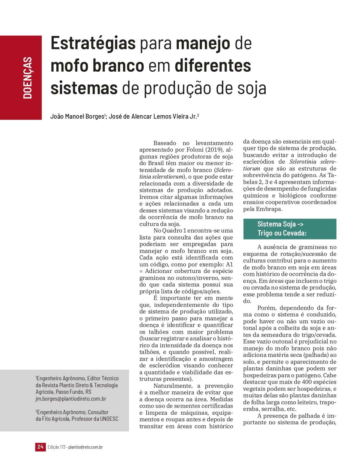 Estratégias para manejo de mofo branco em diferentes sistemas de produção de soja