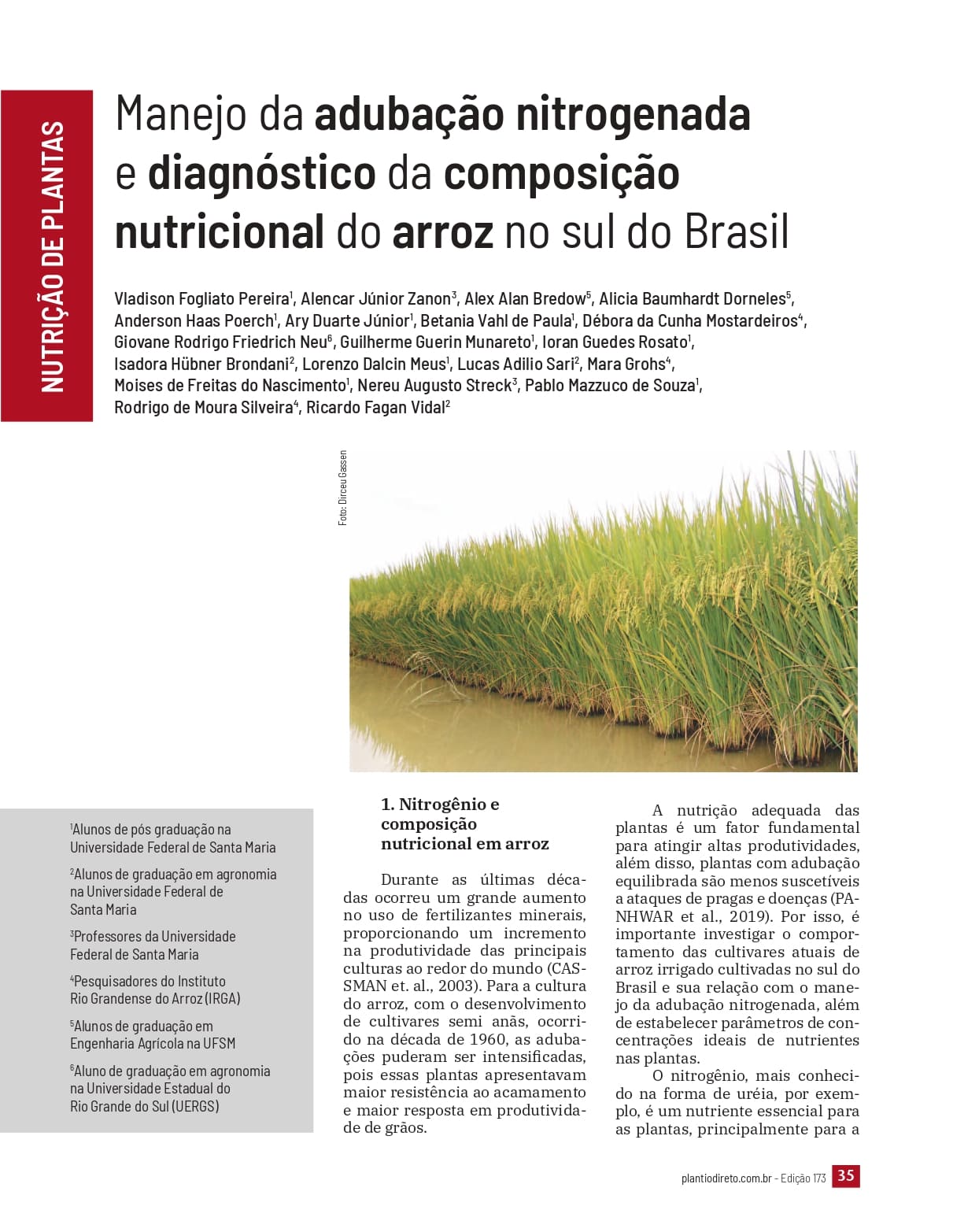 Manejo da adubação nitrogenada e diagnóstico da composição nutricional do arroz no sul do Brasil
